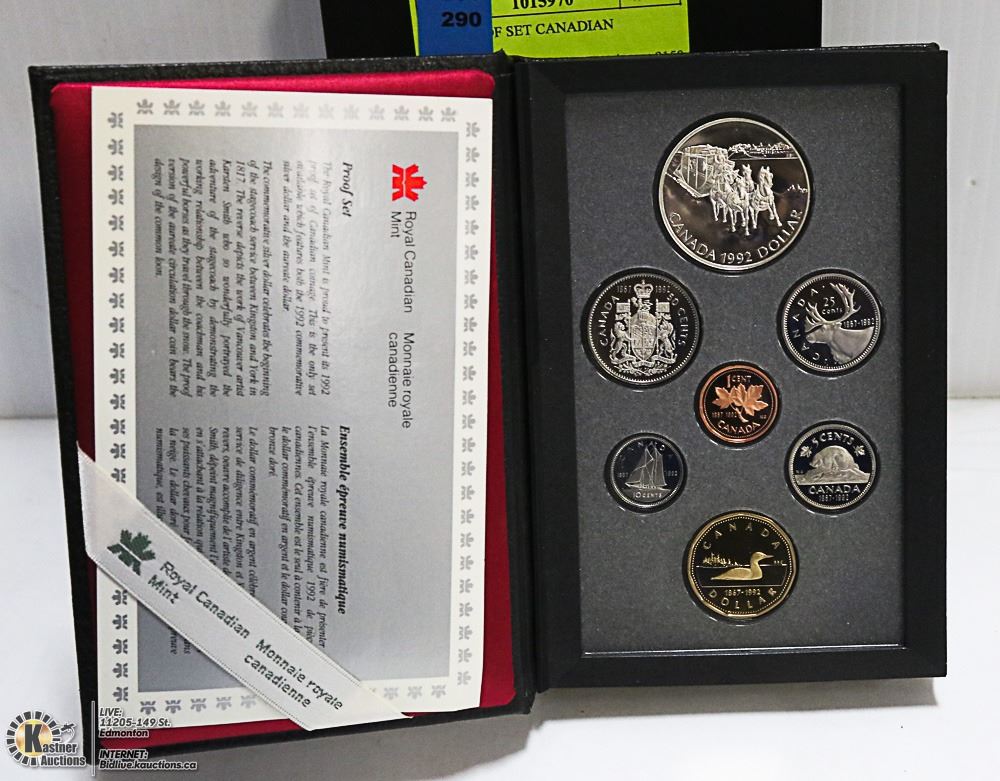 THIS SET FEATURES BOTH THE 1992 SILVER DOLLAR COMMEMORATING THE BEGINNING OF THE STAGECOACH SERVICE BETWEEN KINGSTON AND YORK IN 1817, AND THE AUREATE DOLLAR.