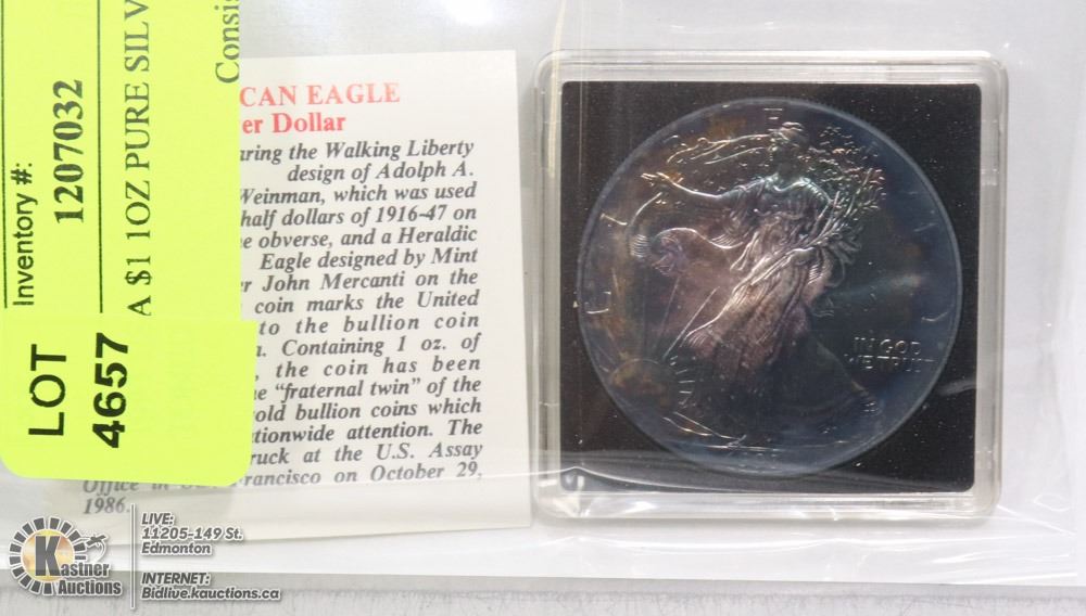 BEAUTIFUL RAINBOW TONING. LOWER MINTAGE DATE .999 SILVER