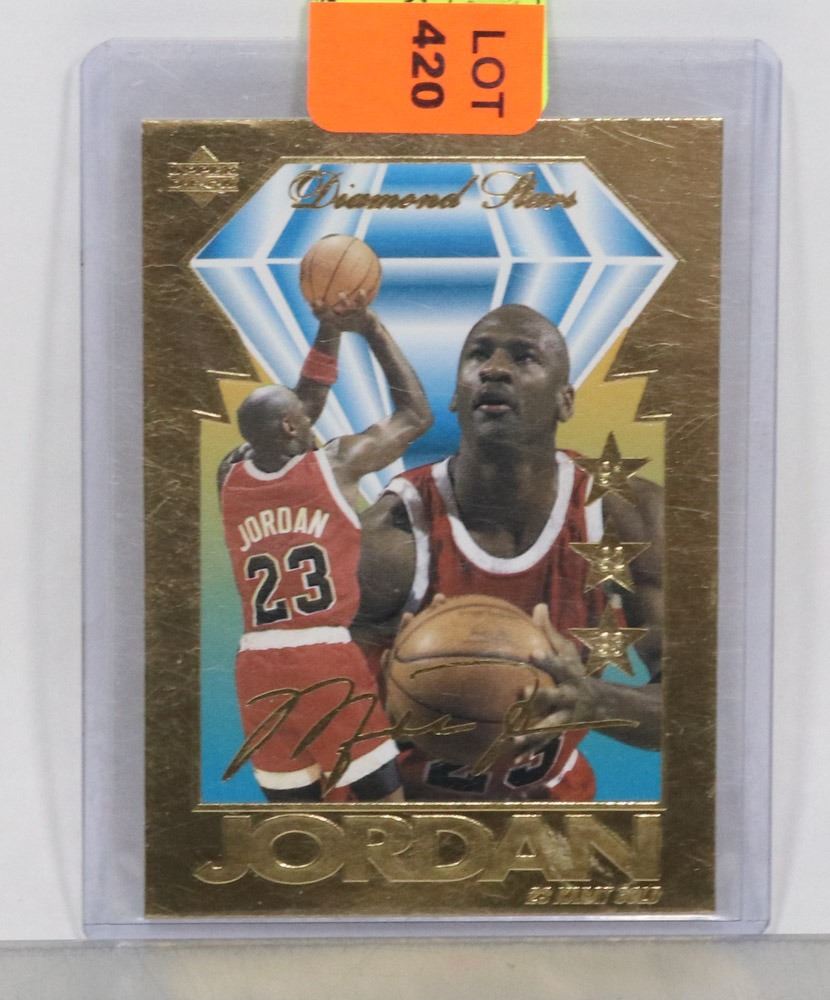 NUMBERED UPPER DECK DIAMOND STARS COMMEMORATIVE EDITION SCULPTED GOLD CARD; SERIAL NUMBER: 10442; CARD INSIDE SLEEVE AND INSIDE TOP-LOADER; CHICAGO BULLS NBA COLLECTIBLE