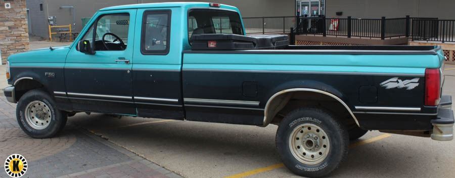 320858KM , 8 FOOT BOX WITH LINER, POWER WINDOWS,POWER DOORS, AIR CONDITIONER, MANUAL LOCKING HUBS ,ALMOST NEW MICHELIN TIRES ON TRUCK WITH 2 OTHER SPARES, LOCKING TOOL BOX WITH KEY, CB RADIO, DUAL GAS FUEL TANKS(BACK TANK NEEDS PUMP)NEWER FRONT END (DONE 2 YEARS AGO) BARREL ON DRIVERS SIDE DOOR NEEDS TO BE REPLACED. WORKS BUT INTERMITTENTLY 2 SETS OF KEYS ARE ON TAG #94 AT THE FRONT