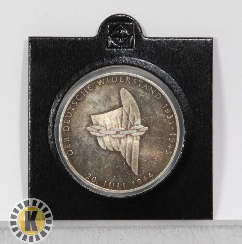 ONE OF THE FEW "COMMEMORATIVE" ISSUES FOR WW2 ISSUED IN GERMANY, THIS INTERESTING ISSUE WAS FOR THE ATTEMPTED ASSASSINATION OF HITLER. SILVER 10 MARK. ***ITEM LOCATED IN LETHBRIDGE AB
