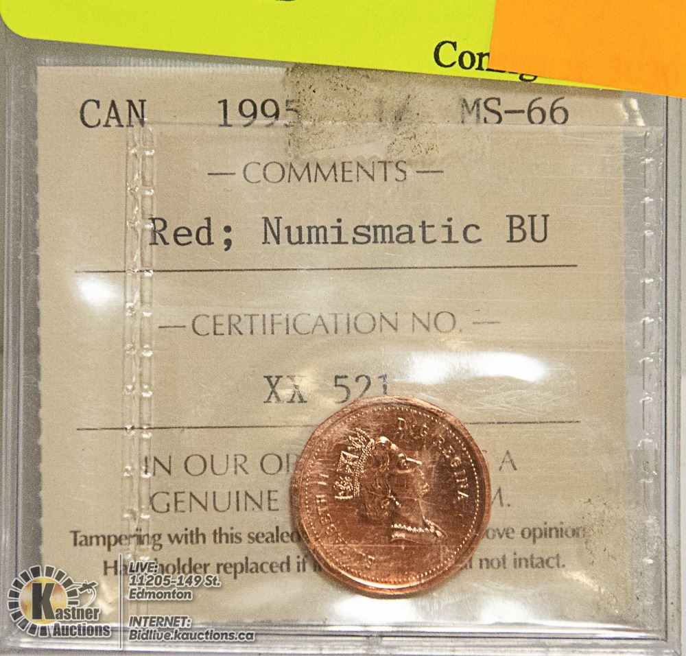 1995 CANADIAN 1 CENT COIN CERT ICCS MS 66 RED