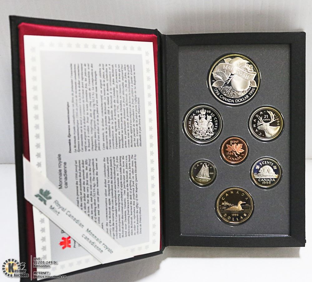 THIS SET FEATURES THE 50, 25, 10, AND 5 CENT ARE ALL COMPOSED OF STERLING SILVER 92.5%AG. THE SET CONTAINS BOTH THE 1995 SILVER DOLLAR COMMEMORATING THE 1796 DISCOVERY OF THE MACINTOSH APPLE, AND THE AUREATE DOLLAR.