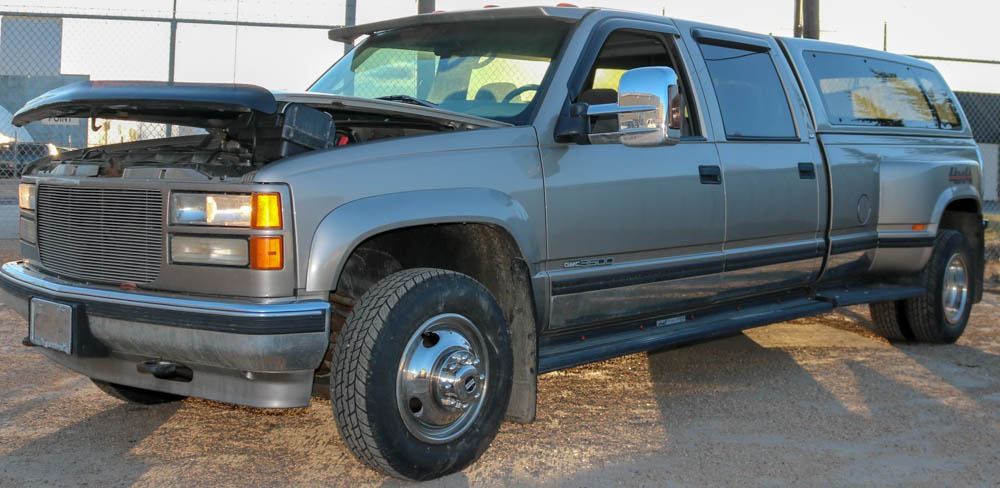 VIN: 1GTHK33J0WF064760 KM: 164,660KM Engine: 7.4L, 8 CYLINDER Color: GREY 164,660KM, AUTOMATIC, CLOTH INTERIOR, 4 DOOR, CREW CAB, 4 WHEEL DRIVE, POWER WINDOWS, POWER LOCKS, POWER MIRRORS, POWER SEATS, AC, RVS SYSTEM, TRUCK BED COVER, DUAL REAR TIRES, CARGO LAMP, BATTERY IS DEAD, KEY ON TAG 68. ALL BIDS ARE SUBJECT TO BANK BAILIFF OR OWNER APPROVAL. VEHICLE