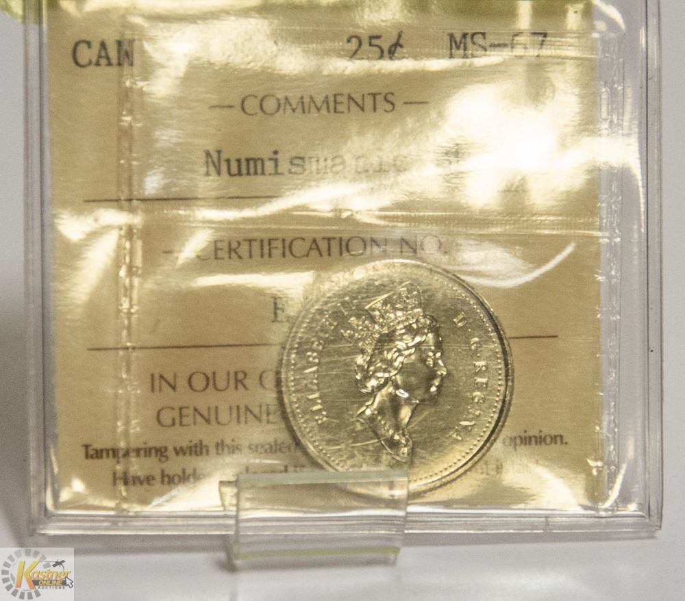 1999 CANADIAN 25 CENT COIN CERTIFIED ICCS MS-67