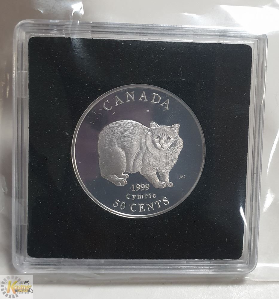 SPECIAL EDITION .925 STERLING SILVER PROOF CANADA 50 CENT COIN FEATURING FAMOUS CATS OF CANADA. MIRROR FIELDS AND FROSTED DESIGN ISSUED ONLY FOR COLLECTORS.
