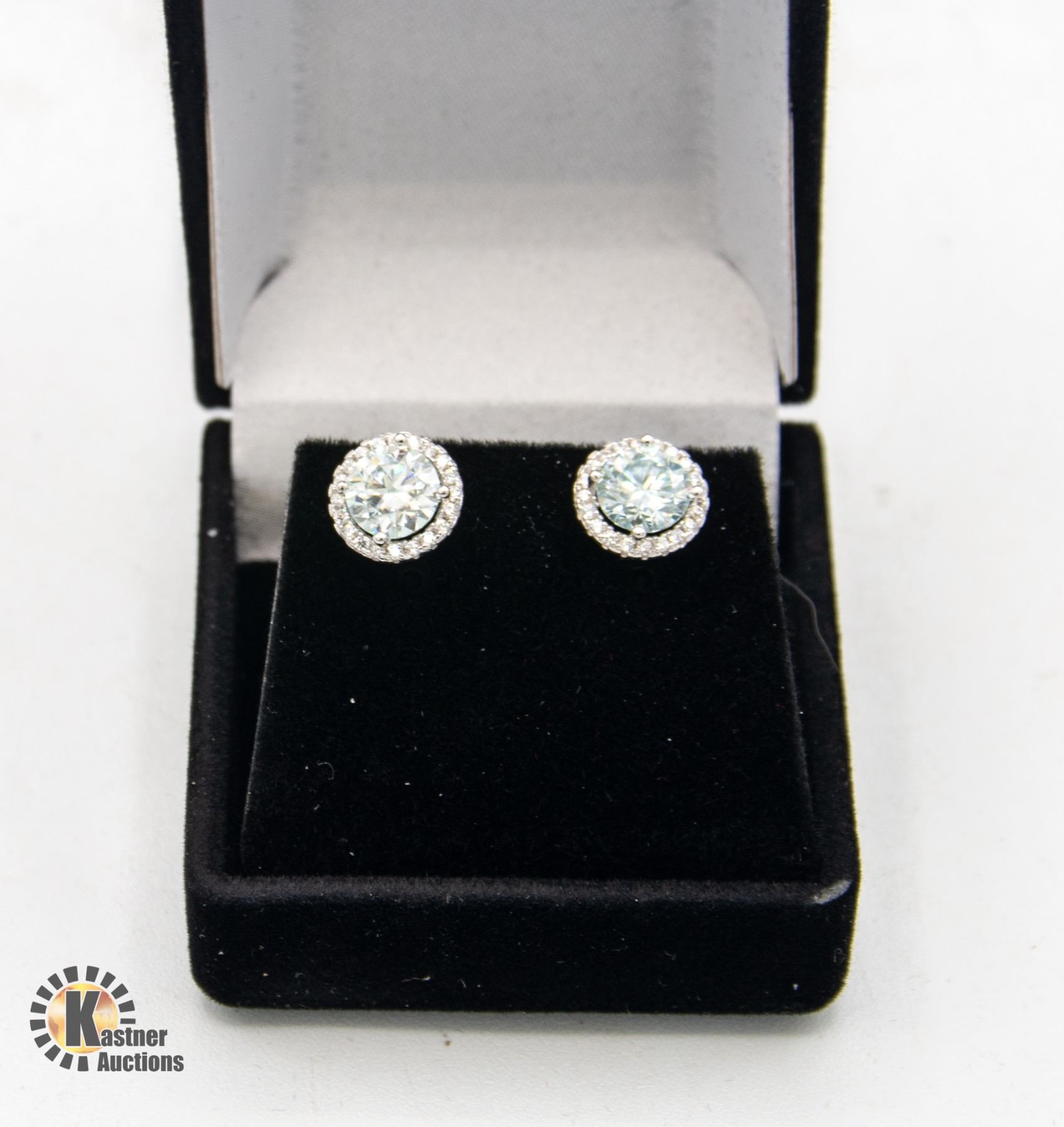 CENTER OF EARRING WITH ROUND HALO SET WITH 20 ROUND CUBIC ZIRCONIA SET AROUND CENTER WEIGHING 0.10 IN EACH EARRING IN STERLING SILVER RETAIL VALUE $950.00 **ALL ITEMS MUST BE REMOVED BY 5PM SATURDAY, MAY 4TH 2024. ALL REMAINING ITEMS WILL BE SUBJECT TO A $6.00 PER DAY STORAGE CHARGE. ANY ITEMS REMAINING AFTER MONDAY, MAY 20TH 2024 WILL BE CONSIDERED FORFEITED. NO REFUNDS WILL BE ISSUED FOR FORFEITED ITEMS. TO SCHEDULE A PICK UP APPOINTMENT CLICK HERE