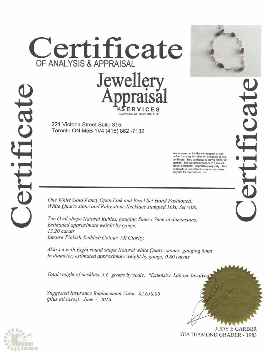 W/ COA - SUGGESTED REPLACEMENT VALUE $2,650.00