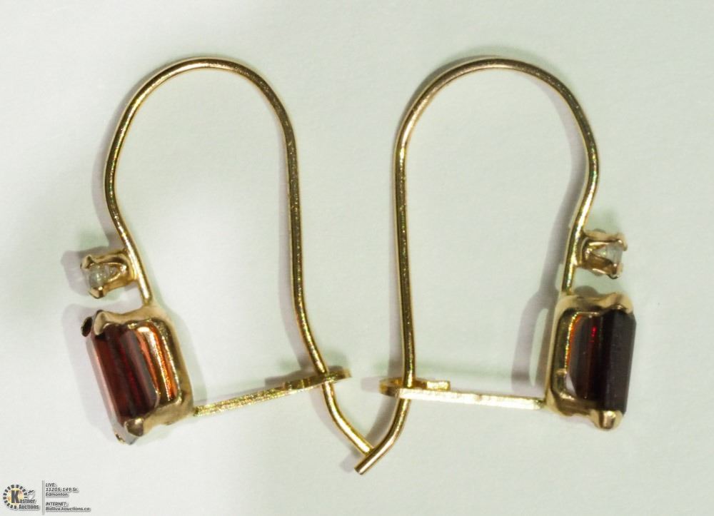 2 - BA25 - 10KT YELLOW GOLD GARNET (1.25CT) & DIAMOND EARRINGS