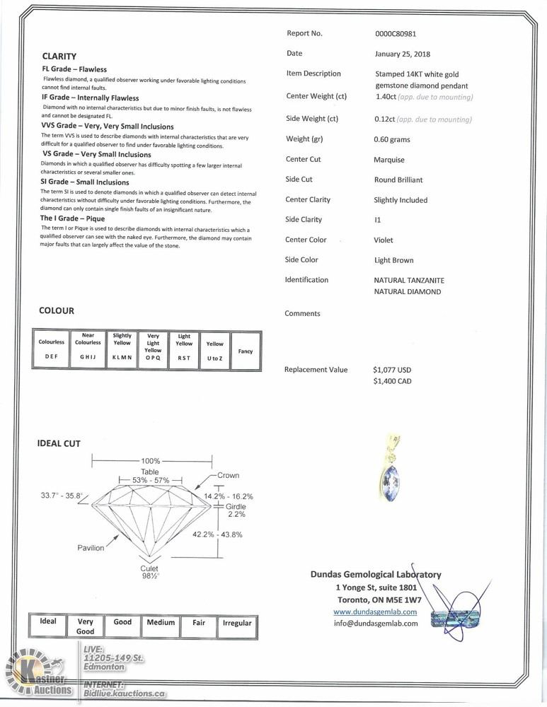 FASHION CORD… 2 - LS78 - 14KT WHITE GOLD TANZANITE (2.40CT) & DIAMOND (0.12CT) PENDANT ON HIGH FASHION CORD. SUGGESTED REPLACEMENT VALUE $1503.00. JEWELRY