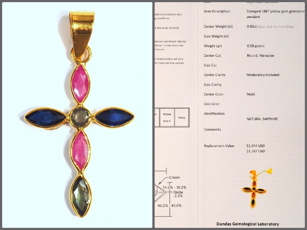 #2-18KT GOLD MULTICOLOURED SAPPHIRE (0.92CT) CROSS