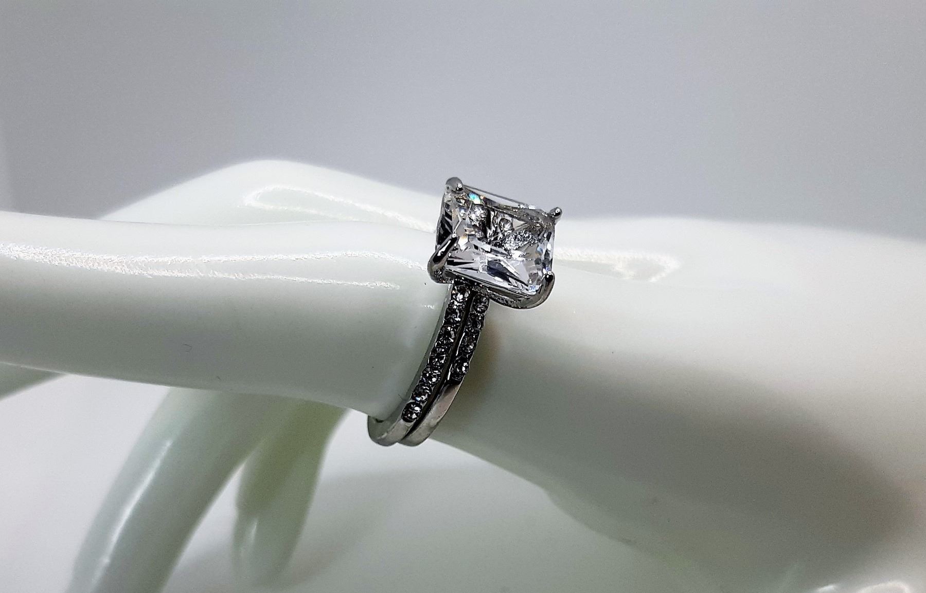 FEATURING A SOLITAIRE ENGAGEMENT RING AND 1/2 ETERNITY BAND, SIZE 8. JEWELRY