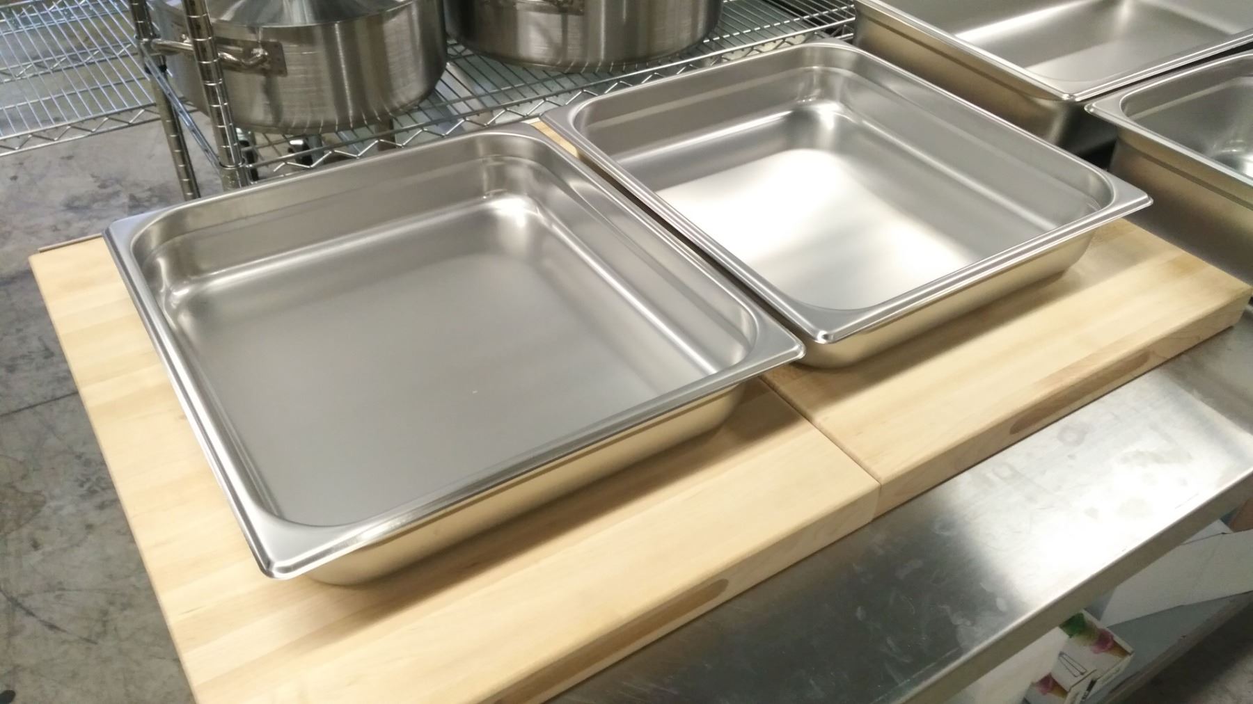W463 - NEW 2/3 SIZE, 2.5" DEEP STAINLESS STEEL INSERTS - LOT OF 2