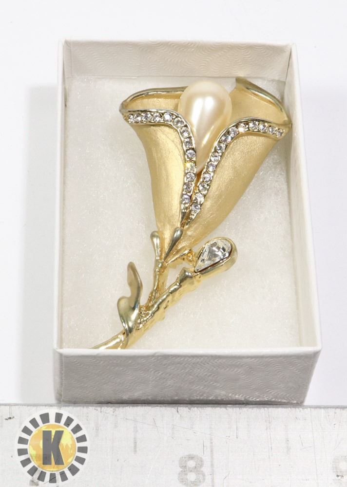 2.5'' IN SIZE WITH ALL STONES INTACT, LARGE CENTER PEARL IN FLOWER. VINTAGE COSTUME PIECE. ***ITEM LOCATED IN LETHBRIDGE AB