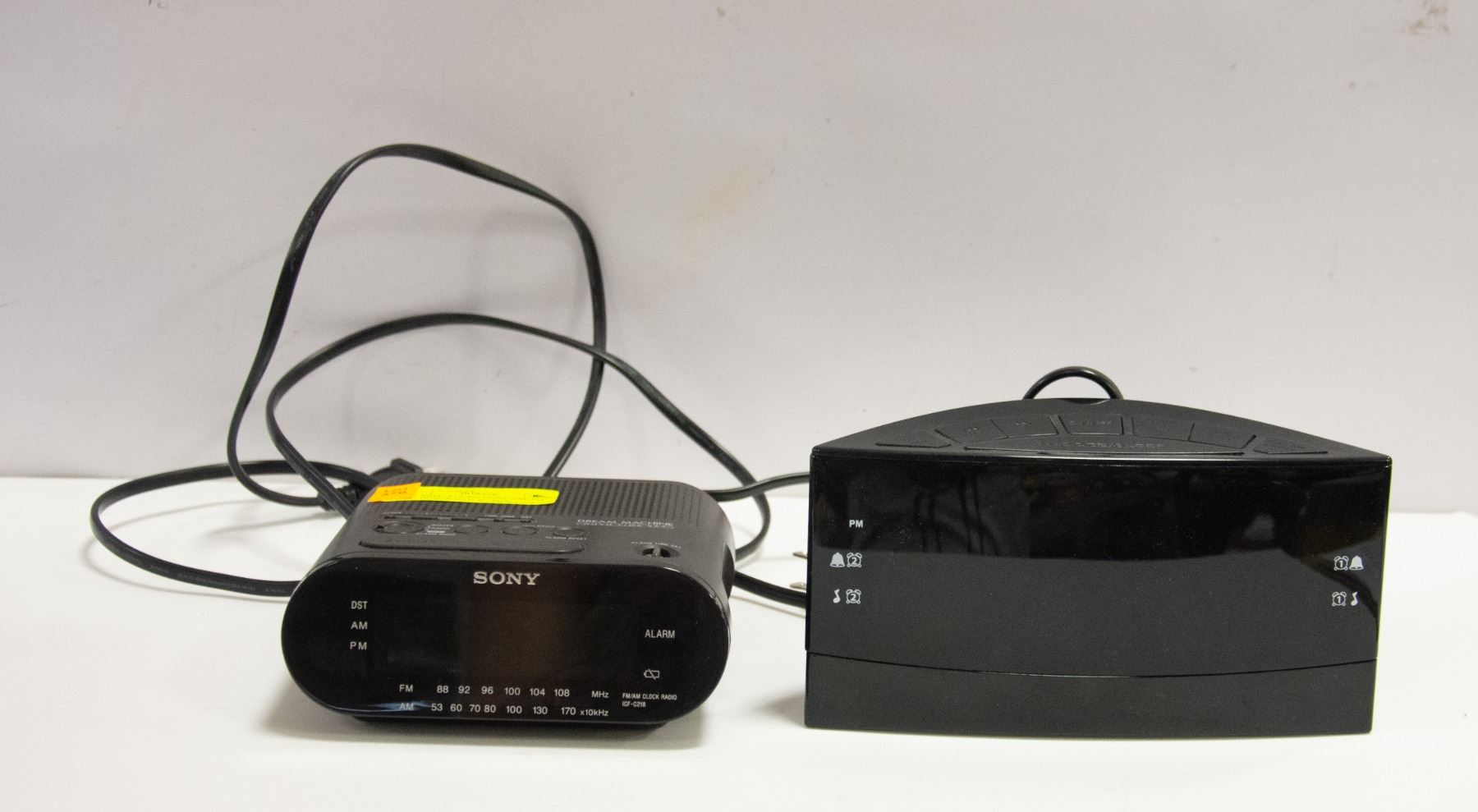 2 ALARM CLOCKS: SONY DREAM MACHINE & ONN W/ AUX