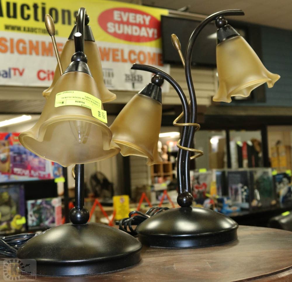 2 AMBER COLOR SHADE FLORAL TABLE LAMPS