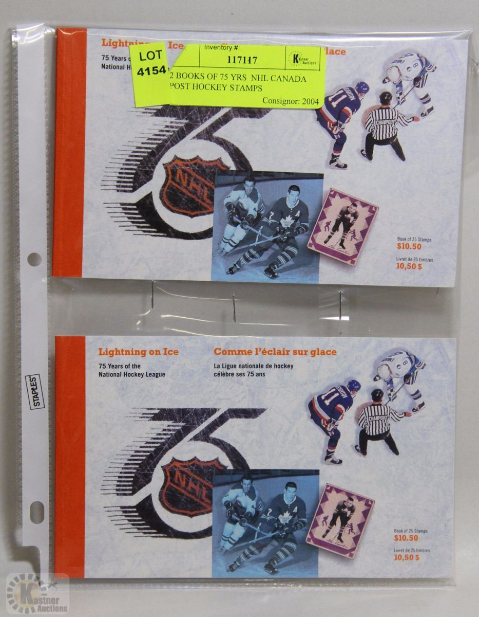 2 BOOKS OF 75 YRS  NHL CANADA POST HOCKEY STAMPS