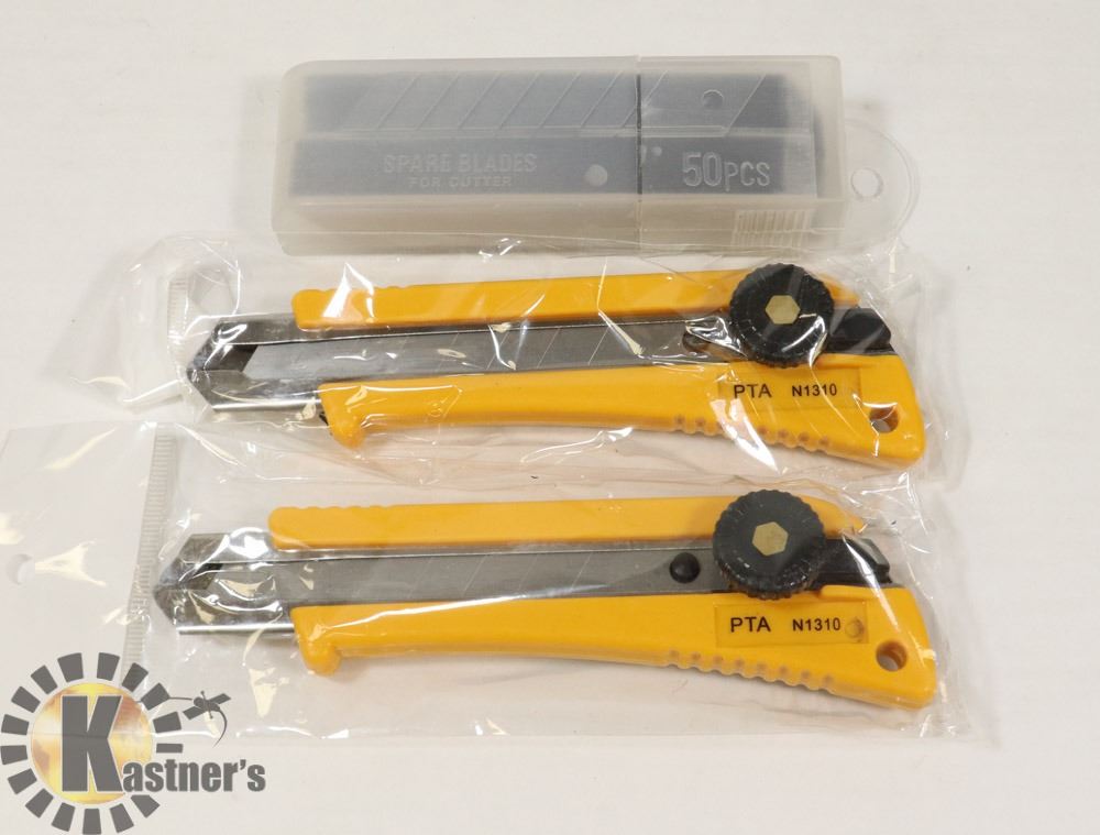 2 BOX CUTTER/OLFA KNIVES & 50 BLADES