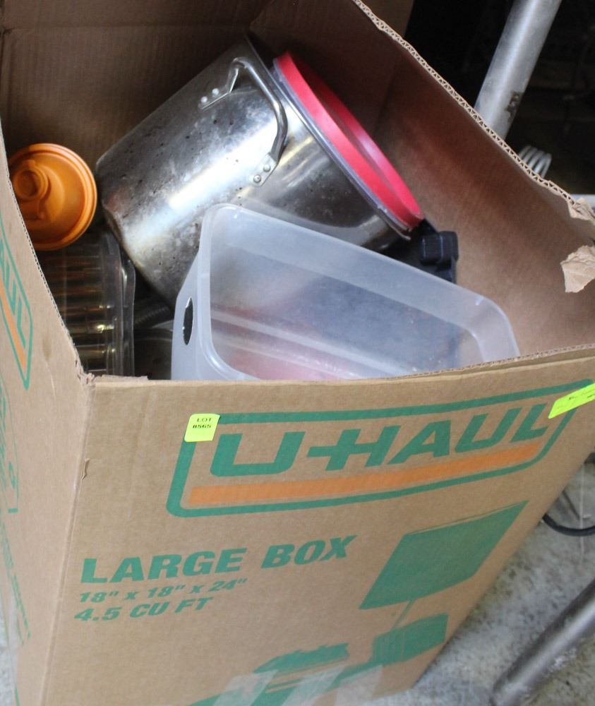 2 BOXES OF ASSORTED KITCHEN COOKWARE & PLASTICWARE