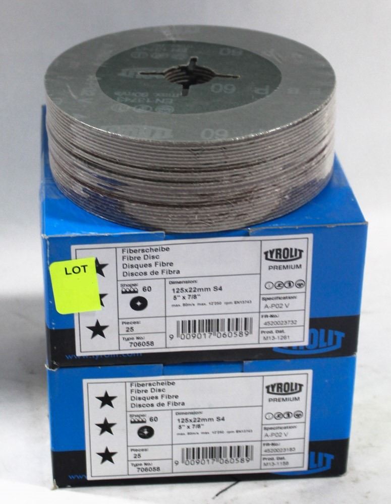 2 BOXES OF TYROUT FIBER DISCS, 5" X 7/8",