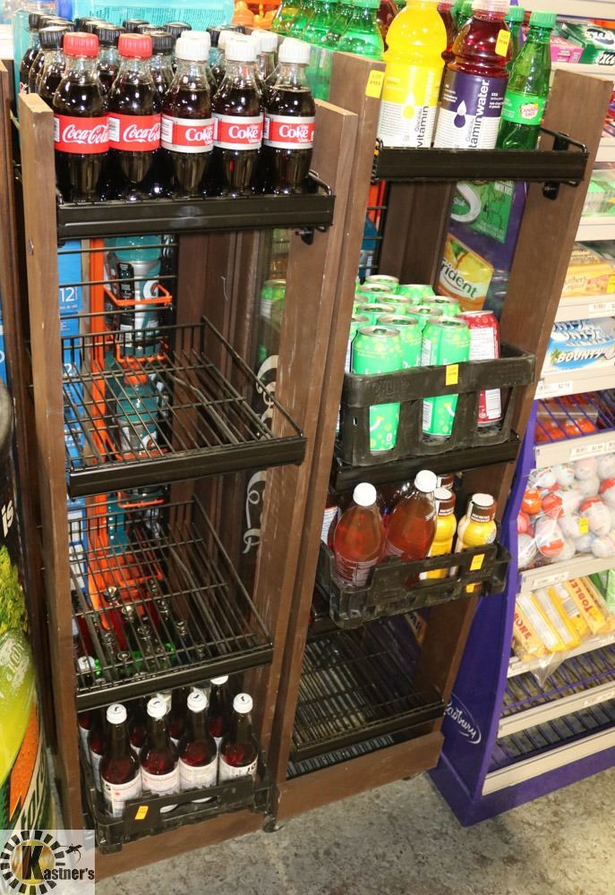 2  BROWN & BLACK COCA COLA RACK 4 TIER  DISPLAY SHELVES.
