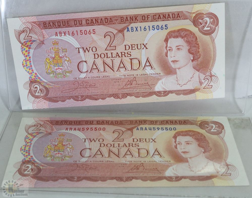 2 CANADIAN $2 BILLS UNCIRCULATED 1974