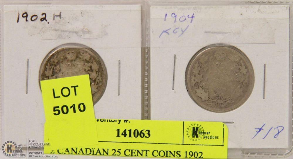 2 CANADIAN 25 CENT COINS 1902 AND 1904