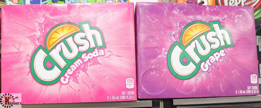 2 CASES OF 355ML CRUSH 12PK CREAM SODA/ GRAPE POP.