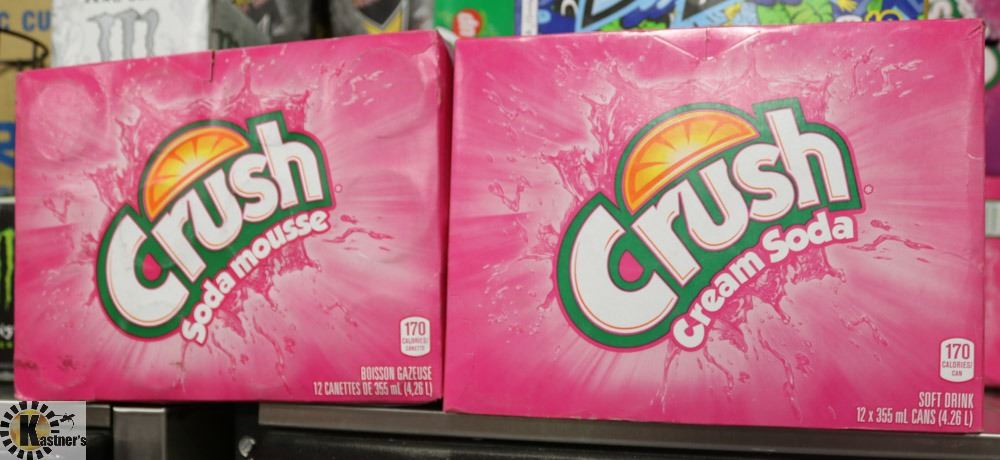 2 CASES OF 355ML CRUSH 12PK CREAM SODA POP.
