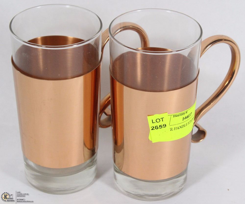 2 COPPER HANDLE STEINS