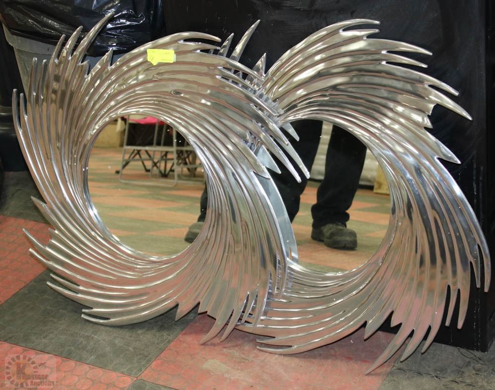 2 CUSTOM METAL WALL HANGING MIRRORS AS IS ( SHARP