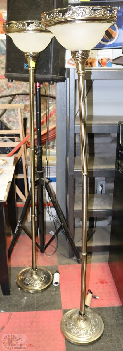 2 DECORATIVE METAL AND GLASS FLOOR LAMPS