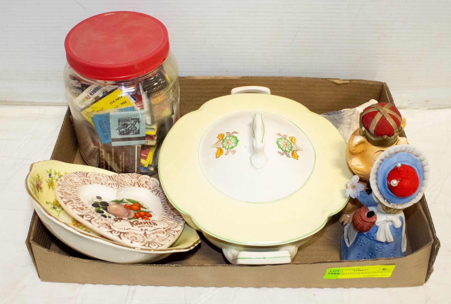 JAR OF ADVERTISEMENT MATCH BOOKS, WELLER CASSEROLE OVAL CERAMIC DISH + 2 CERAMIC DISHES **ALL ITEMS MUST BE REMOVED BY 5PM SATURDAY, DECEMBER 9TH 2023. ALL REMAINING ITEMS WILL BE SUBJECT TO A $6.00 PER DAY STORAGE CHARGE. ANY ITEMS REMAINING AFTER THURSDAY, DECEMBER 21ST 2023 WILL BE CONSIDERED FORFEITED. NO REFUNDS WILL BE ISSUED FOR FORFEITED ITEMS. TO SCHEDULE A PICK UP APPOINTMENT CLICK HERE