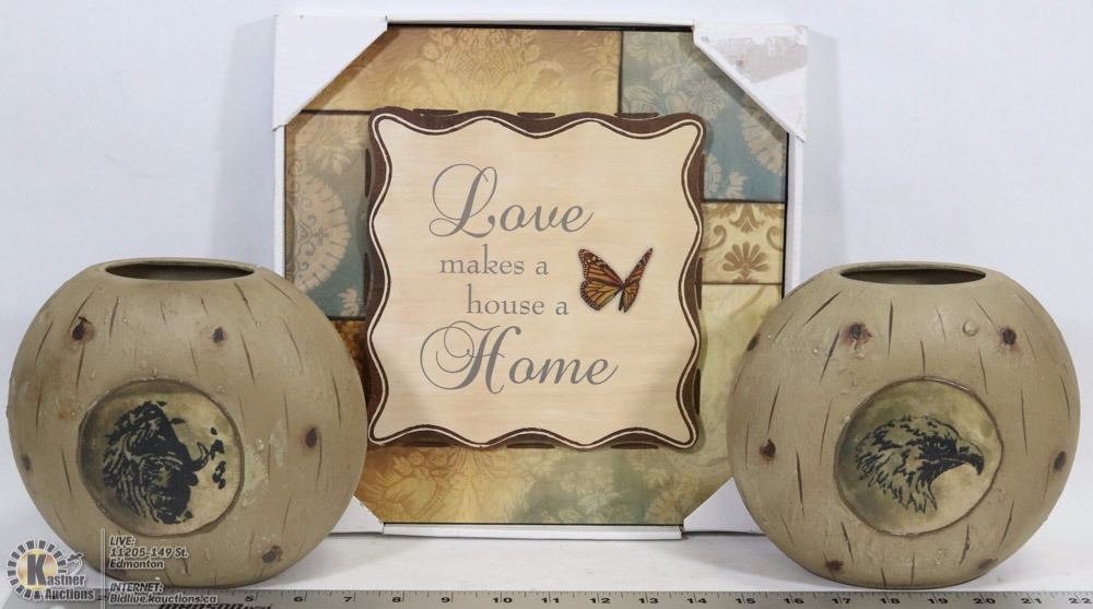 2 DECORATIVE VASES WITH DECORATIVE PLAQUES