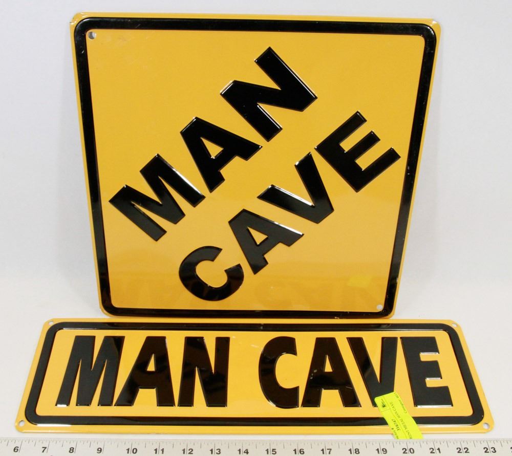 2 DIFFERENT METAL MAN CAVE SIGNS