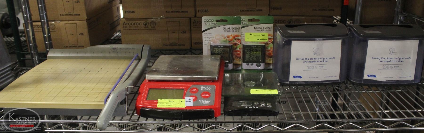 DISPENSERS SOLD W/ PAPER CUTTER. STRAFRIT 5KG/11LBS DIGITAL SCALE M#:93016 (3V LITH-ION BATTERY), GORDON CHOICE 15KG/33LBS DIGITAL SCALE M#: 601GFS (4 AA BATTERIES)