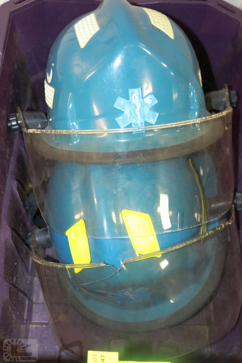 2 FIRE FIGHTING HATS ONE WITH LEATHER NECK SHIELD