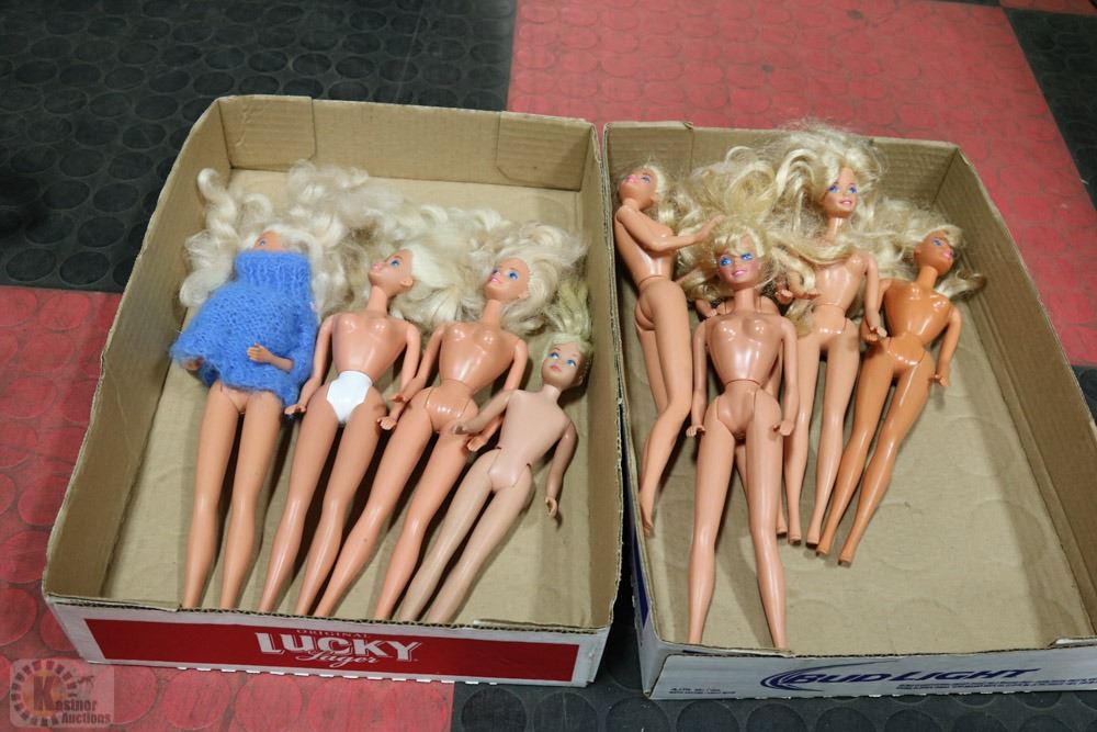 2 FLATS OF 1966&1975 BARBIES+SKIPPER W/CLOTHES
