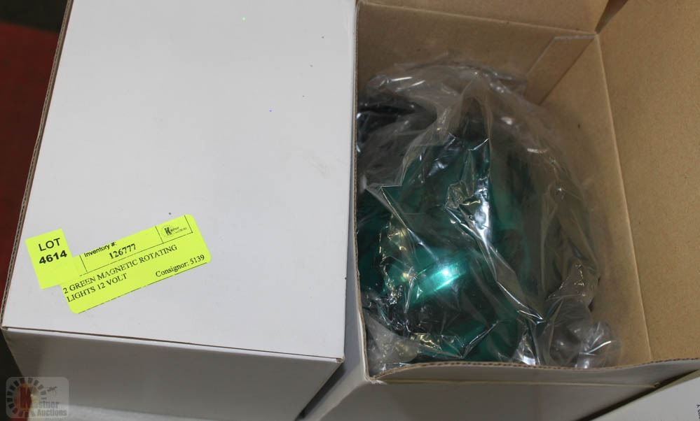 2 GREEN MAGNETIC ROTATING LIGHTS 12 VOLT