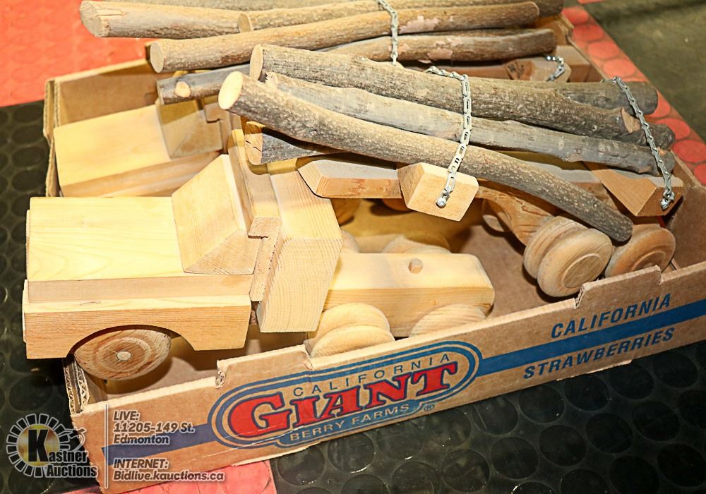2 HANDMADE LOGGING TRUCKS TOYS LOT