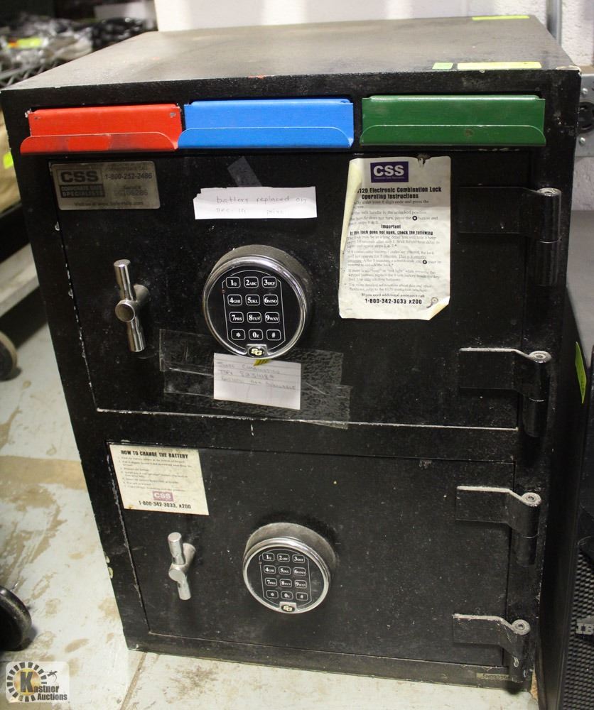 3-DEPOSITS, 19-3/4" X 16-1/2" X 27-3/4", MODEL#:6120, BATTERY REPLACED ON DEC.14TH (UNKOWN YEAR)COMBINATION ELECTRONIC SAFE. SAFE COMBINATION #: TOP: 823418, BOTTOM NOT AVAILABLE
