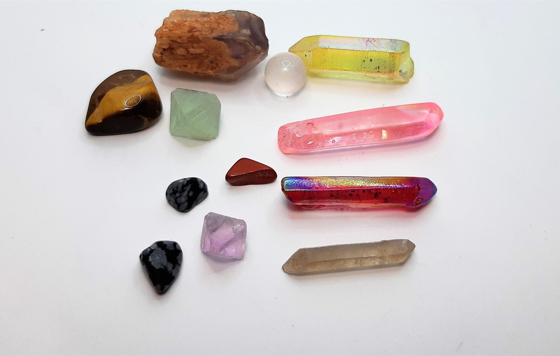 INCLUDES: ROSE QUARTZ, FLOURITE, RAINBOW TITANIUM, TIGER'S EYE, ROCK CRYSTAL, AMETHYST, ETC, 41 GRAMS. COLLECTIBLES