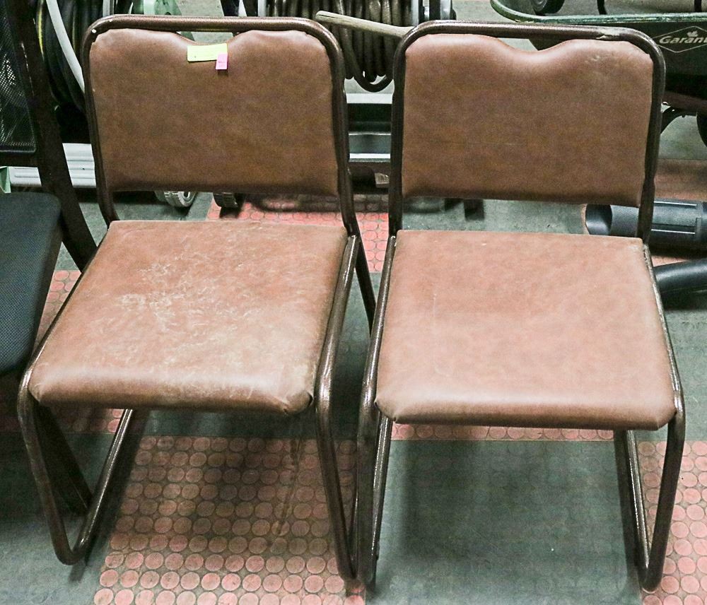 2 METAL CHAIRS WITH BROWN LEATHERETTE SEATS