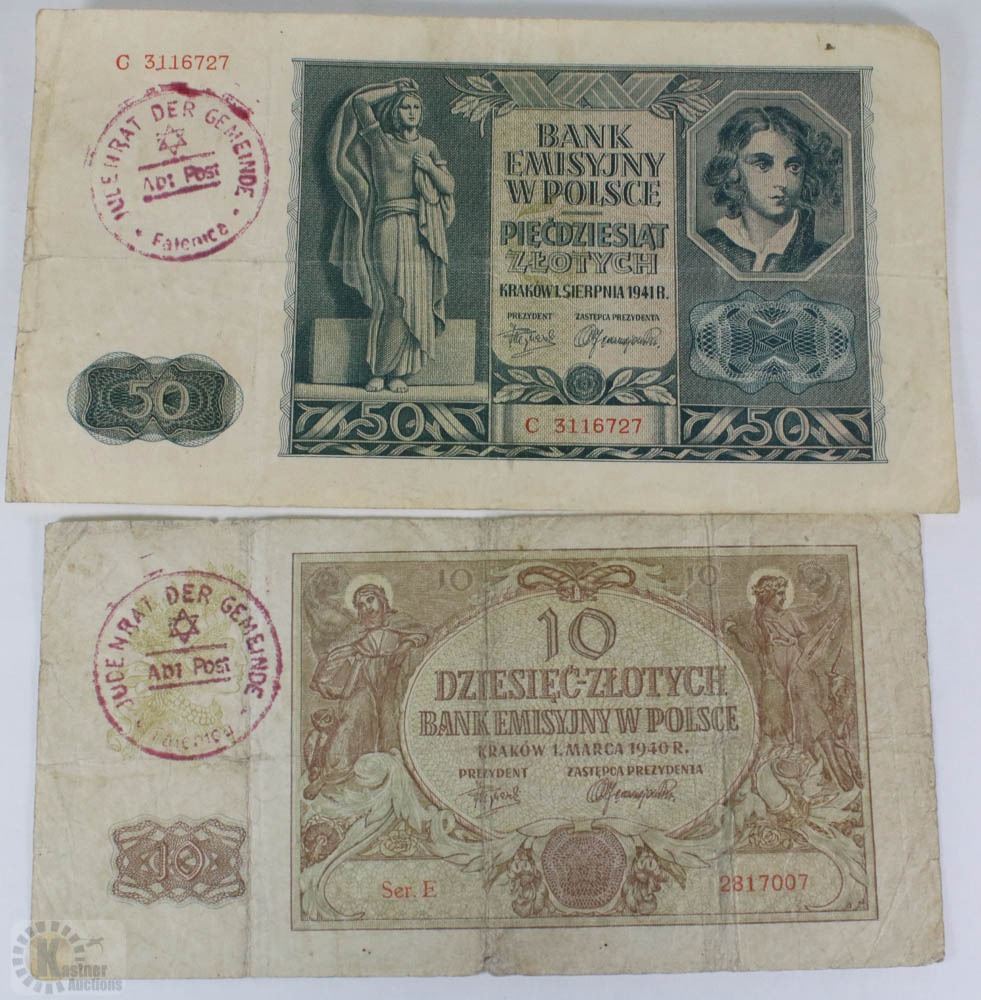 2 NAZI JEWISH GHETTO BANK NOTES STAMPED