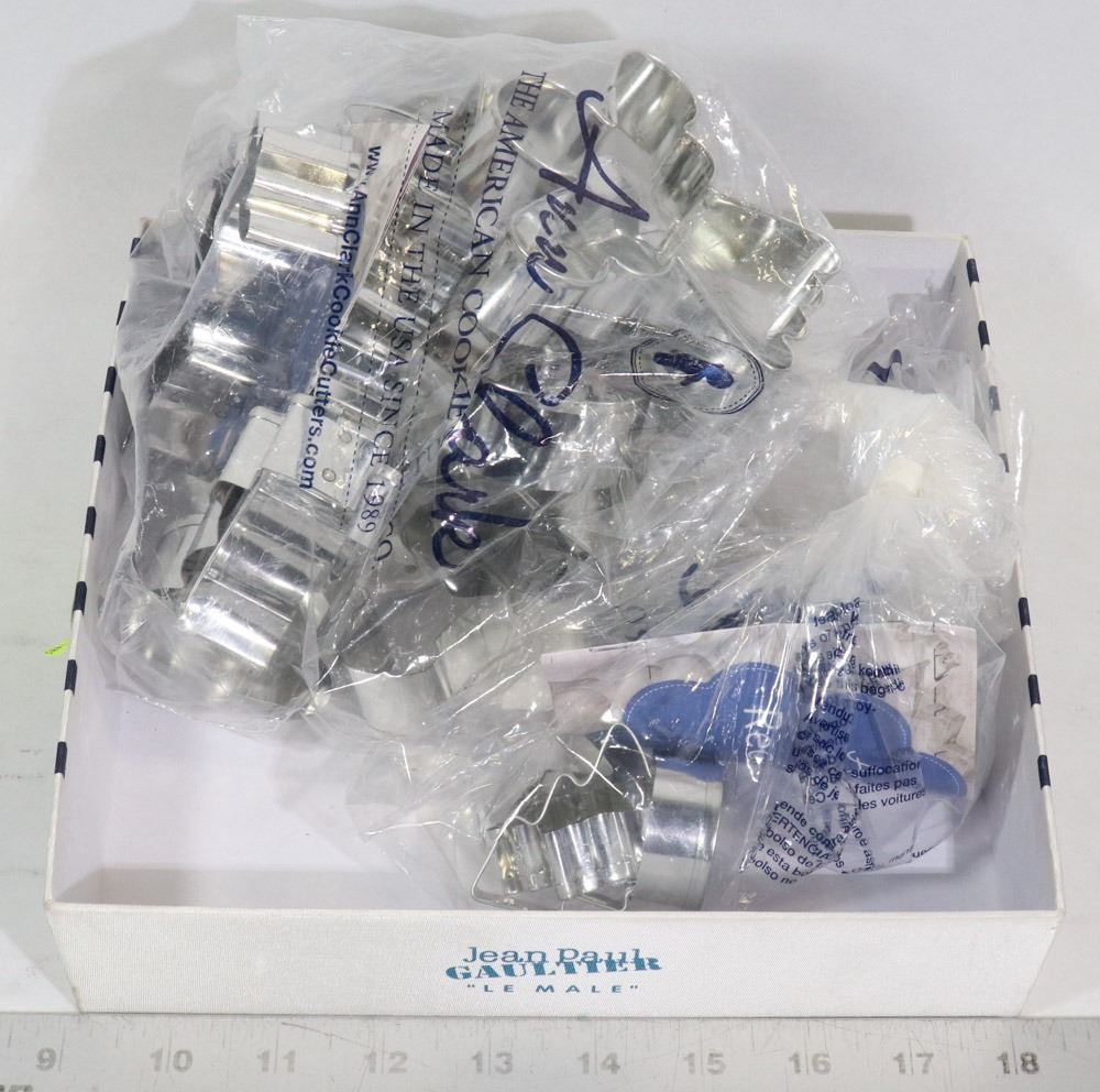 "7 AND 11 PIECE CHRISTMAS COOKIE CUTTER SET WITH RECIPE BOOKLET, SNOWFLAKE, CHRISTMAS TREE, CANDY CANE, REINDEER AND MORE $60 VALUE" - HOME