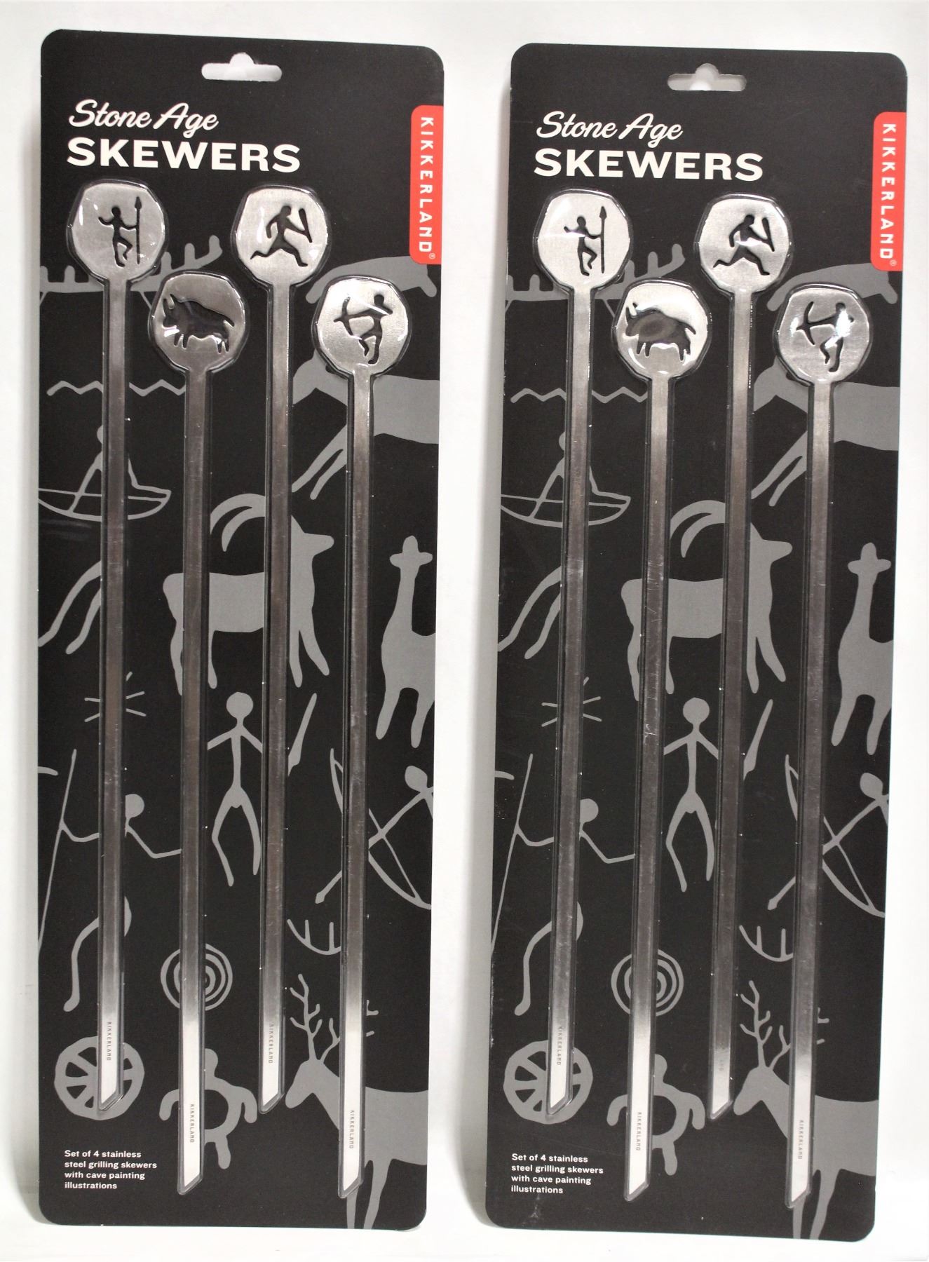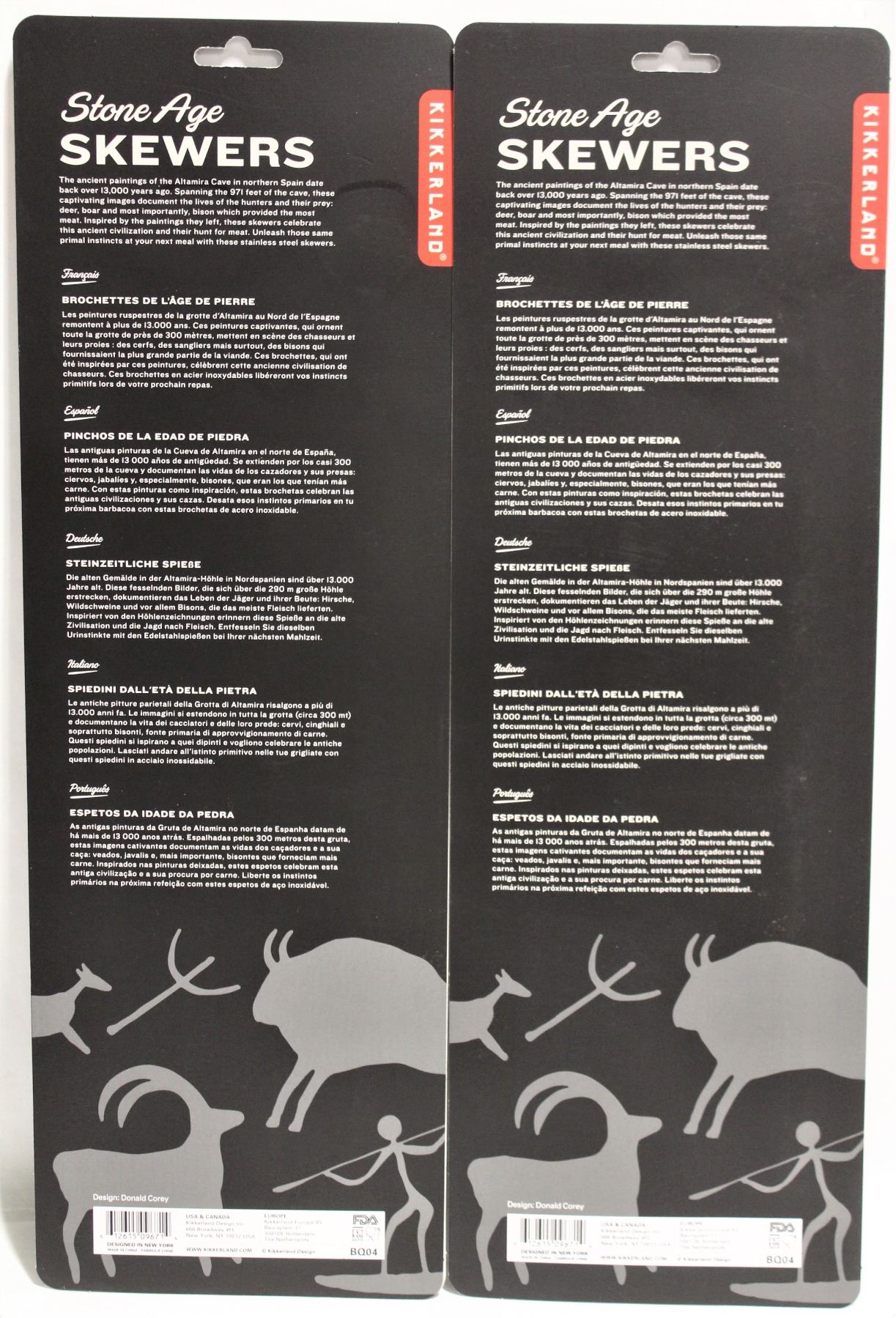 KEBAB SKEWERS. S/S W/ CAVE ILLUSTRATIONS. FDA APPROVED, DISHWASHER SAFE. KIKKERLAND, 8 TOTAL