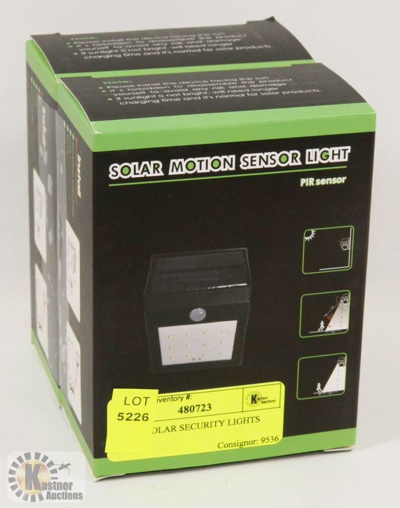TWO SOLAR SECURITY MOTION PIR SENSOR LIGHTS 6500K MODES-ON OFF AUTO NIGHT DIM AND HIGH. NO WIRING REQUIRED. BBQ, SECURITY, ENTRANCE, STAIRS,ETC.