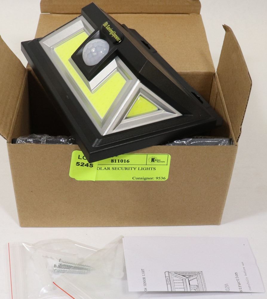 TWO SOLAR SECURITY MOTION PIR SENSOR LIGHTS 6500K MODES-ON OFF AUTO NIGHT DIM AND HIGH. NO WIRING REQUIRED. BBQ, SECURITY, ENTRANCE, STAIRS,ETC.