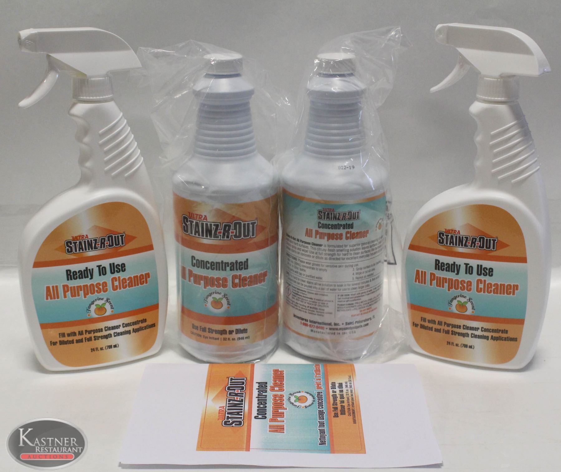 INCLUDES SPRAY BOTTLE AND NOZZLE. 946ML PER BOTTLE. CONCENTRATED ALL PURPOSE CLEANER, DILUTE OR USE FULL STRENGTH TO CLEAN GRILLS & GERASE STAINS.