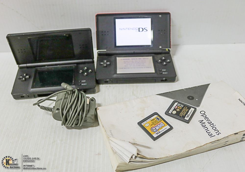 2 NINTENDO DS W/ 3 GAMES, CHARGER & MANUAL